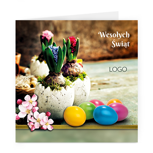 Logo i życzenia są drukowane bezpośrednio na kartce.