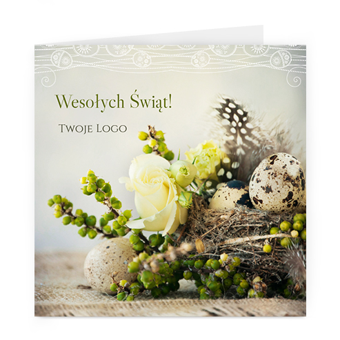 Logo i życzenia są drukowane bezpośrednio na kartce.